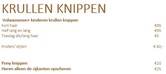 Behandelingen en prijzen prive haarsalon